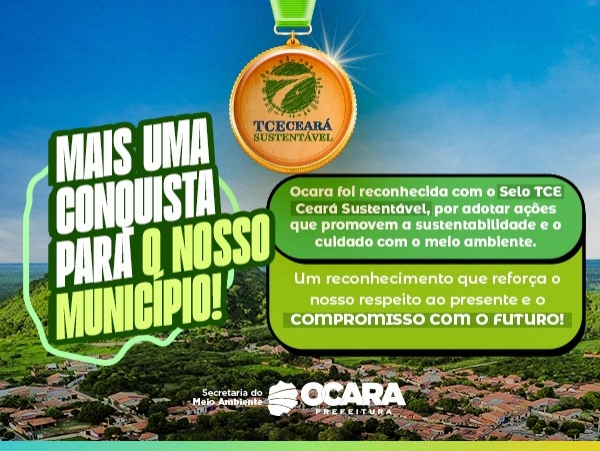 O Município de Ocara foi Reconhecido com o Selo TCE Ceará Sustentável, que Destaca as Ações e Políticas Públicas que Ocara vem Desenvolvendo em Prol da Sustentabilidade