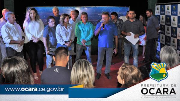 A Prefeita de Ocara, Amália Pereira, assinou nesta sexta-feira (9) a Ordem de Serviço para a retomada do Estádio do Sereno, um antigo sonho dos desportistas ocarenses. A obra deverá ter início já na próxima semana e a empresa executora será a Construtora Santa Beatriz.